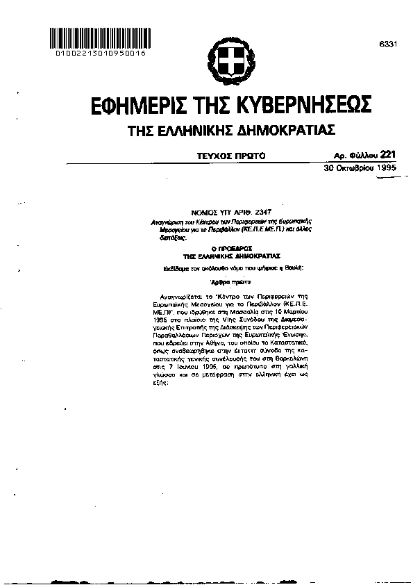 ΡΥΘΜΙΣΗ ΘΕΜΑΤΩΝ ΕΡΓΑΣΙΑΣ ΣΥΝΔΙΚΑΛΙΣΤΙΚΩΝ ΔΙΚΑΙΩΜΑΤΩΝ ΥΓΙΕΙΝΗΣ ΚΑΙ ΑΣΦΑΛΕΙΑΣ ΤΩΝ ΕΡΓΑΖΟΜΕΝΩΝ ΚΑΙ ΟΡΓΑΝΩΣΗΣ ΥΠΟΥΡΓΕΙΟΥ ΕΡΓΑΣΙΑΣ ΚΑΙ ΤΩΝ ΕΠΟΠΤΕΥΟΜΕΝΩΝ ΑΠΟ ΑΥΤΟ ΝΟΜΙΚΩΝ ΠΡΟΣΩΠΩΝ ΚΑΙ ΑΛΛΕΣ ΔΙΑΤΑΞΕΙΣ