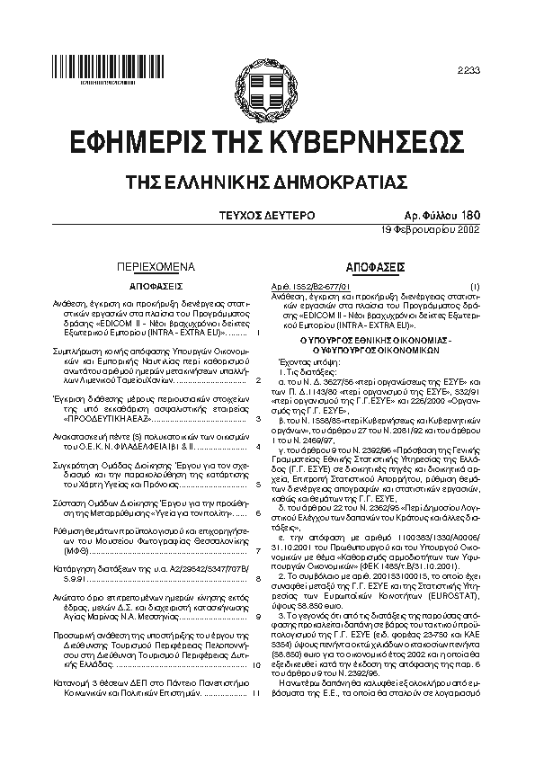 Αναζήτηση στα ΦΕΚ για:  Ετήσιο Δράσης
