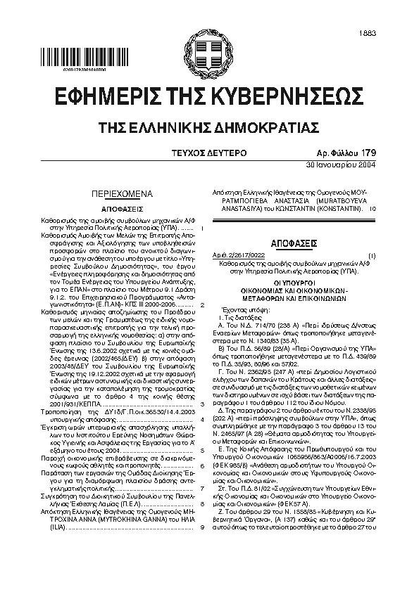 Αναζήτηση στα ΦΕΚ για:  Ετήσιο Δράσης