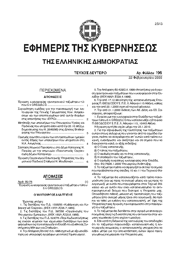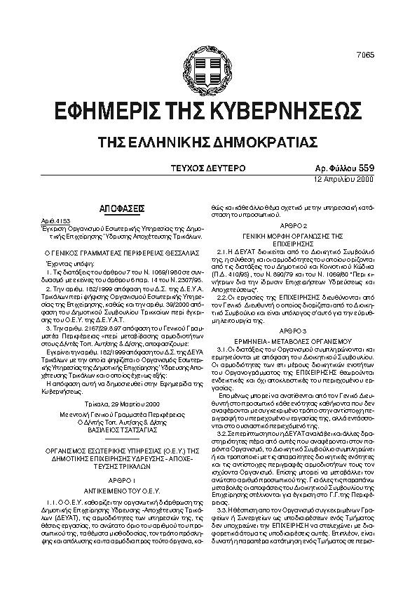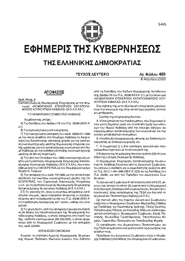 Αναζήτηση στα ΦΕΚ για:  Ετήσιο Δράσης