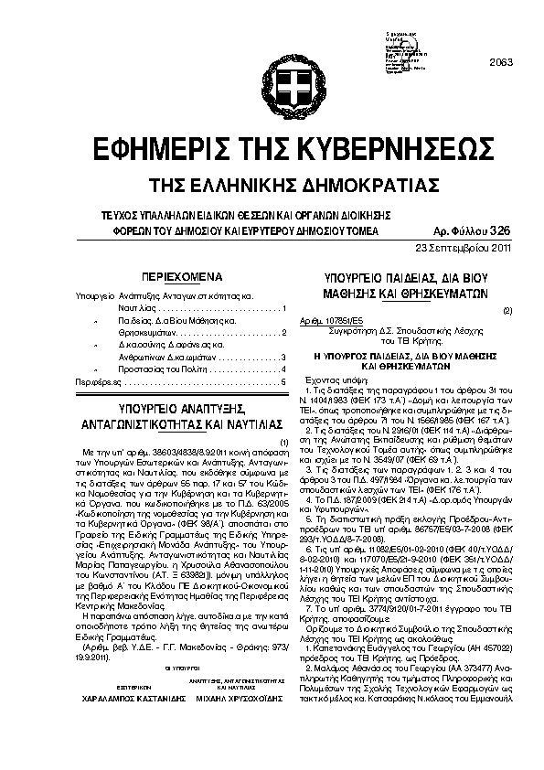Αναζήτηση στα ΦΕΚ για:  Ετήσιο Δράσης