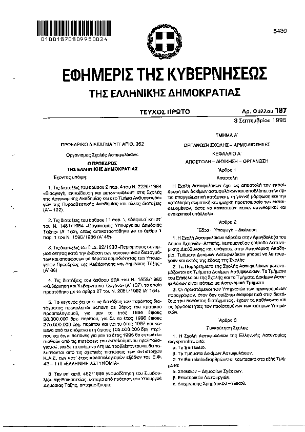 10. ΦΕΚ 187/A, 1995 http://www.et.gr/ Προεδρικό Διάταγμα