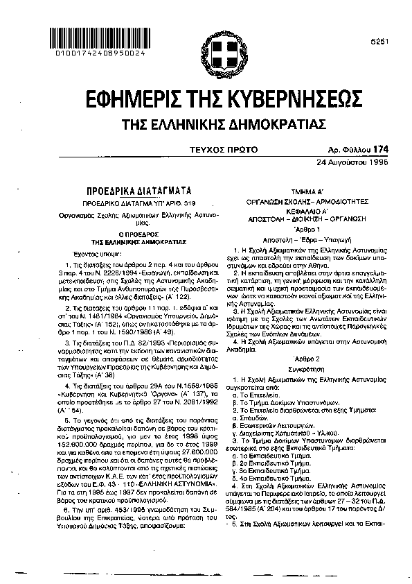 8. ΦΕΚ 174/A, 1995 http://www.et.gr/