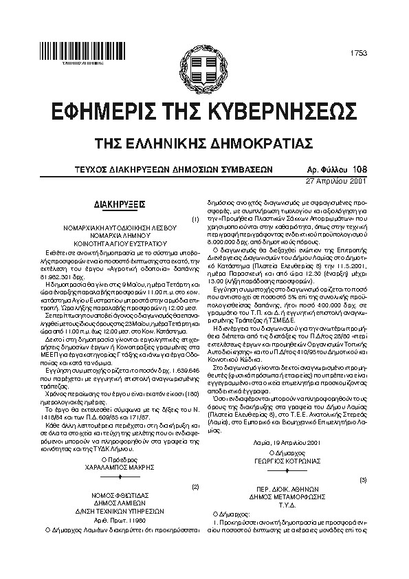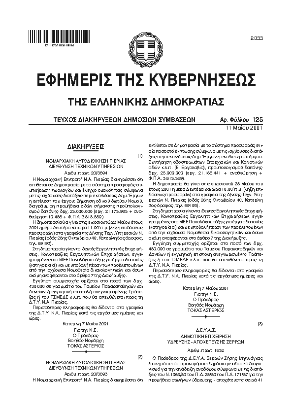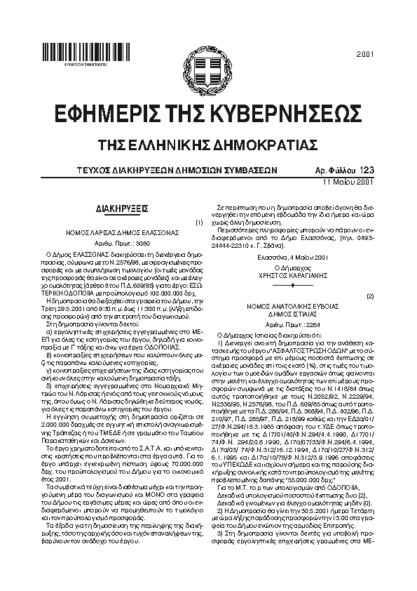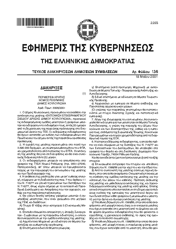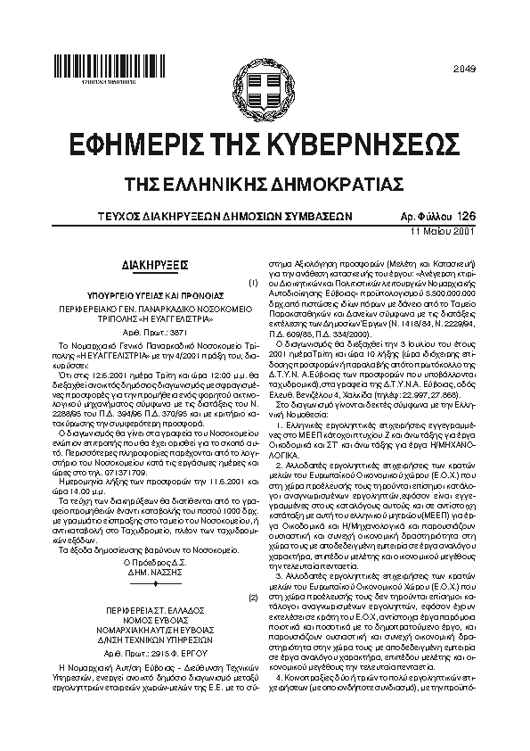 Αναζήτηση στα ΦΕΚ για:  Ετήσιο Πρόγραμμα