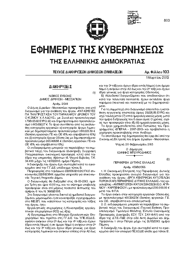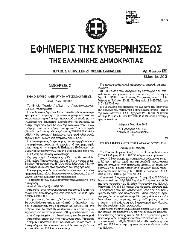 Αναζήτηση στα ΦΕΚ για:  Ετήσιο Πρόγραμμα