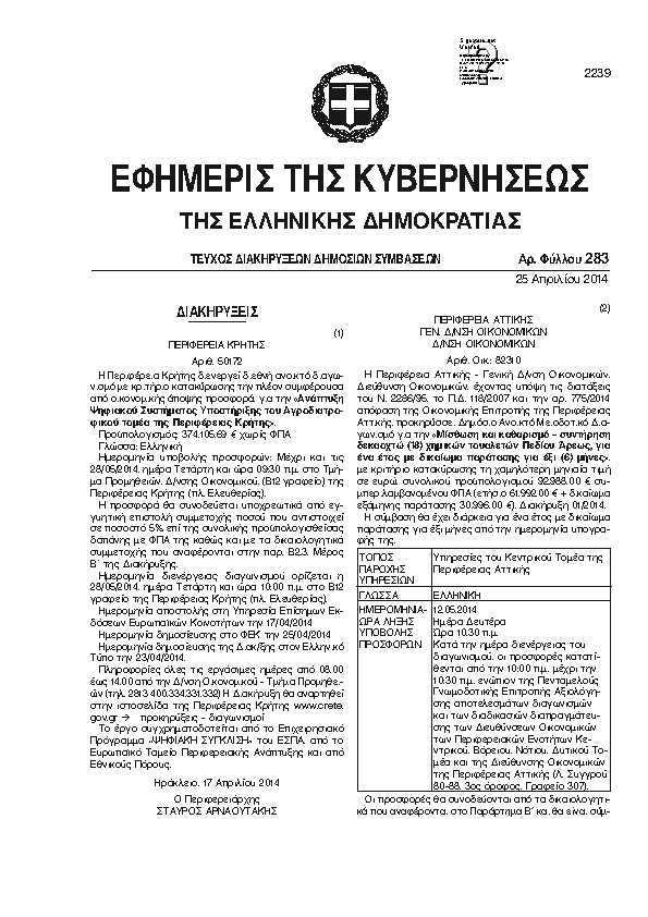 Αναζήτηση στα ΦΕΚ για:  Ετήσιο Πρόγραμμα