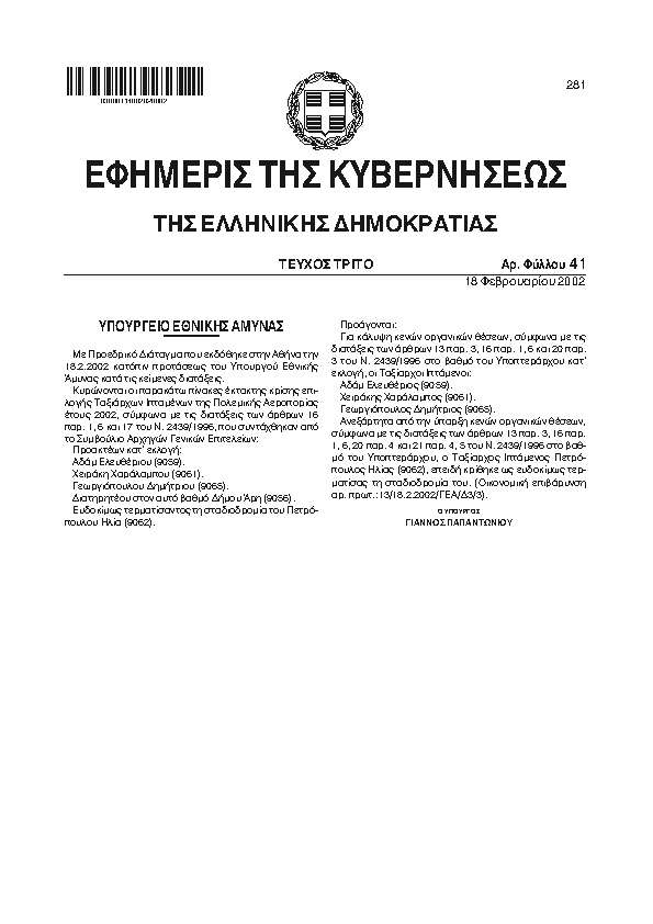 Αναζήτηση στα ΦΕΚ για:  Ετήσιο
