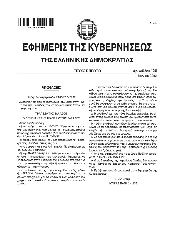1. ΦΕΚ 3/A, 2002 http://www.et.gr/