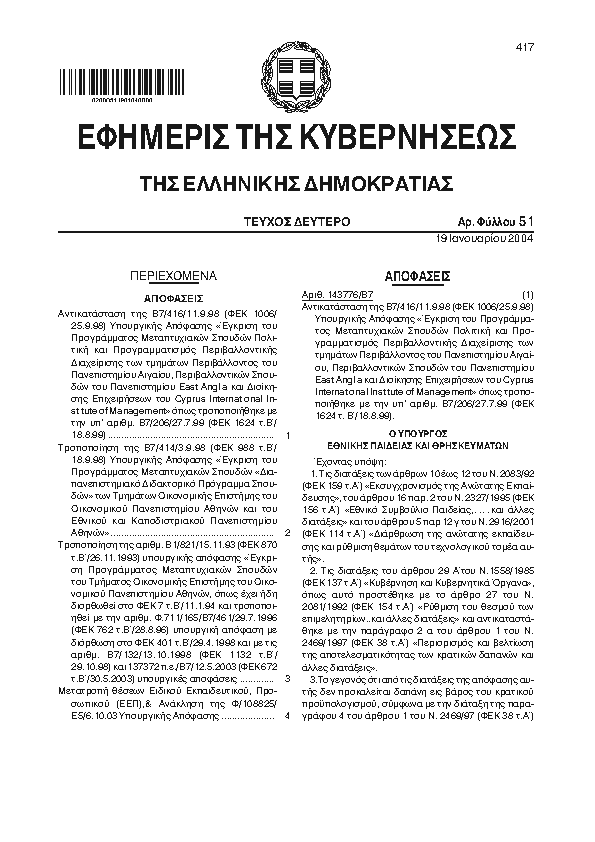 Αναζήτηση στα ΦΕΚ για:  Ετήσιο