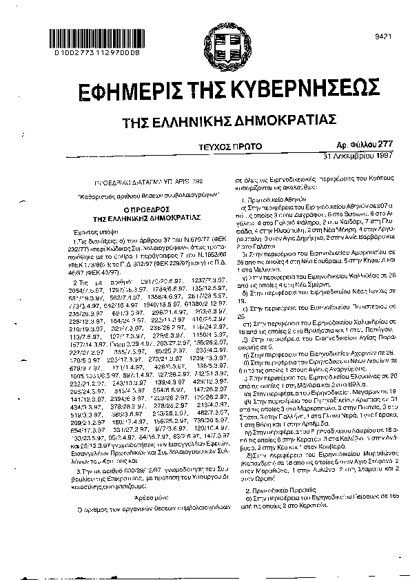 9. ΦΕΚ 277/A, 1997 http://www.et.gr/ Προεδρικό Διάταγμα