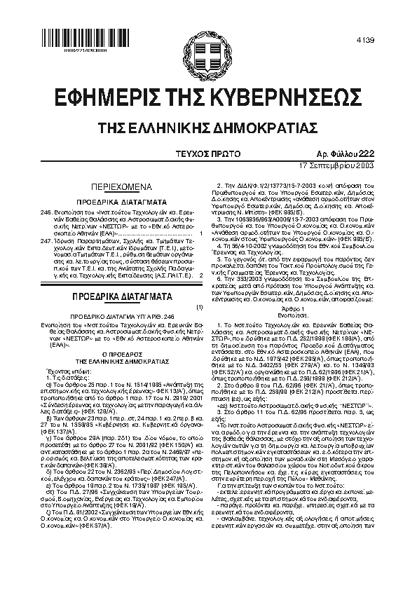 1. ΦΕΚ 222/A, 2003 http://www.et.gr/