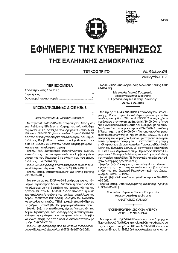 Αναζήτηση στα ΦΕΚ για:  Ιεράπετρας
