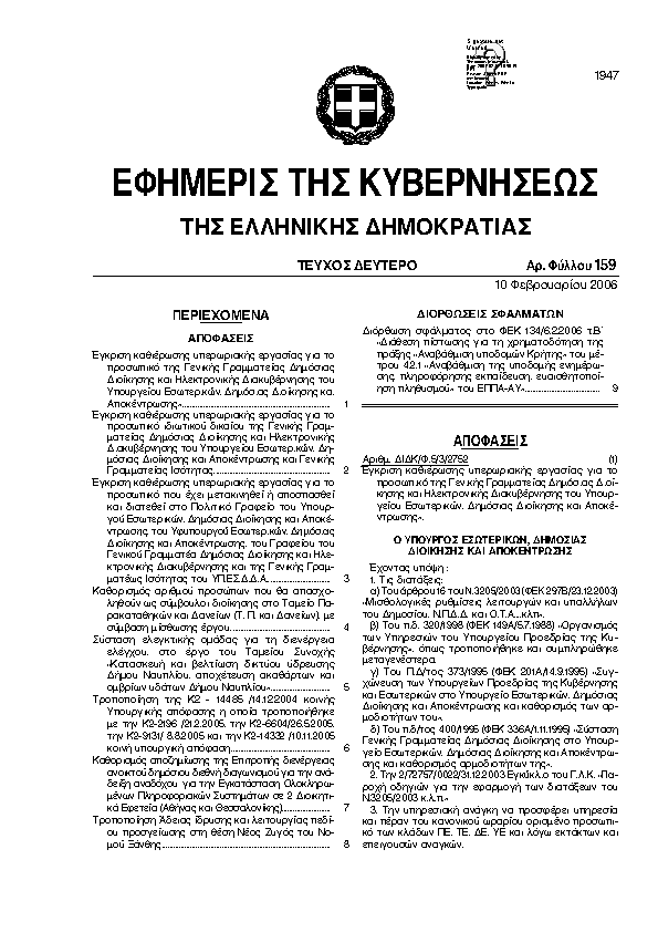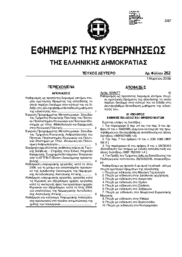 Αναζήτηση στα ΦΕΚ για:  Ισότητας