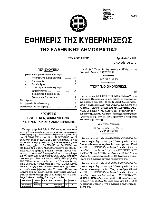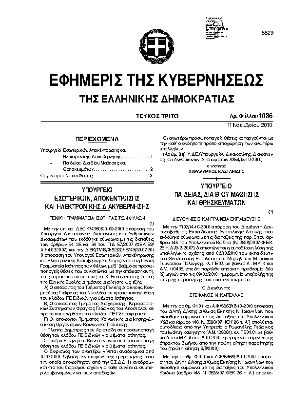 Αναζήτηση στα ΦΕΚ για:  Ισότητας