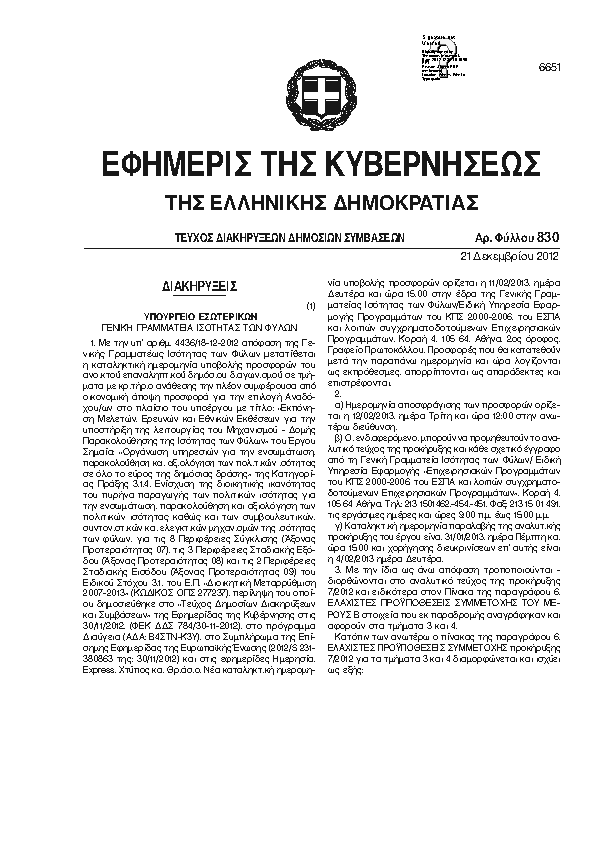 Αναζήτηση στα ΦΕΚ για:  Ισότητας