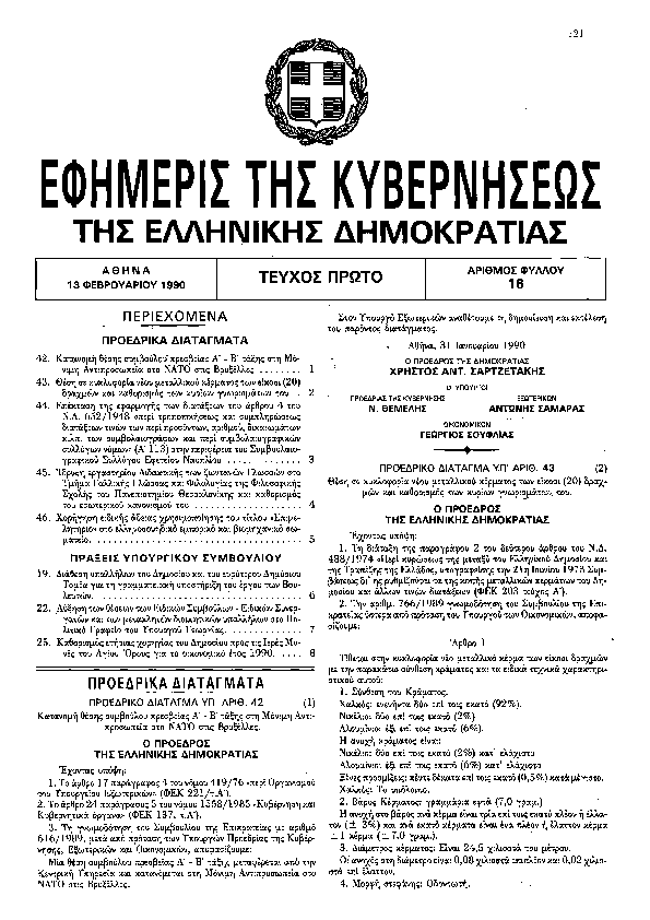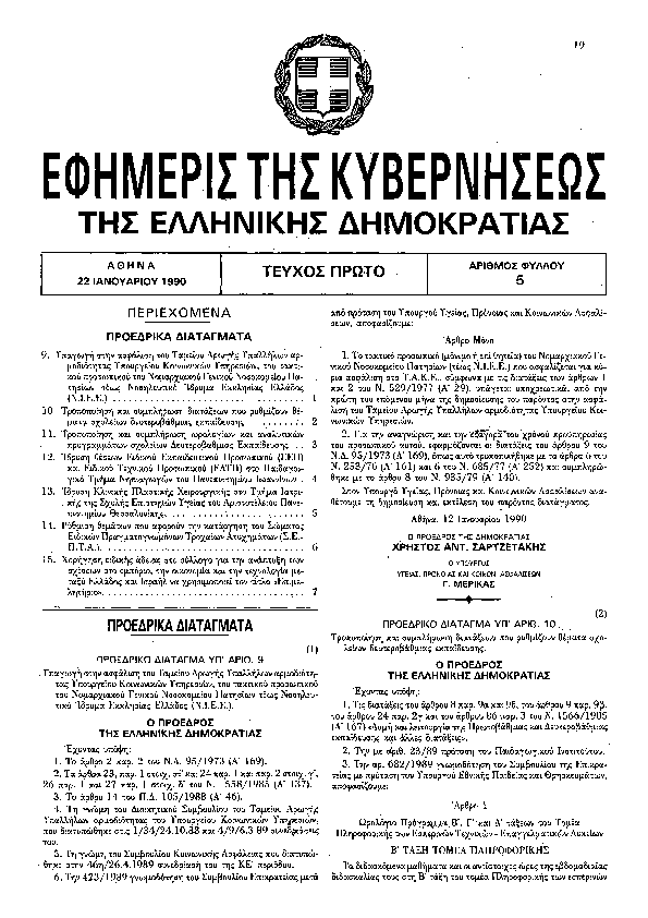 1. ΦΕΚ 5/A, 1990 http://www.et.gr/
