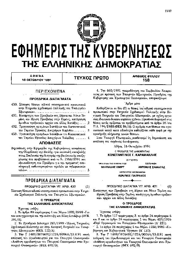 1. ΦΕΚ 2/A, 1991 http://www.et.gr/