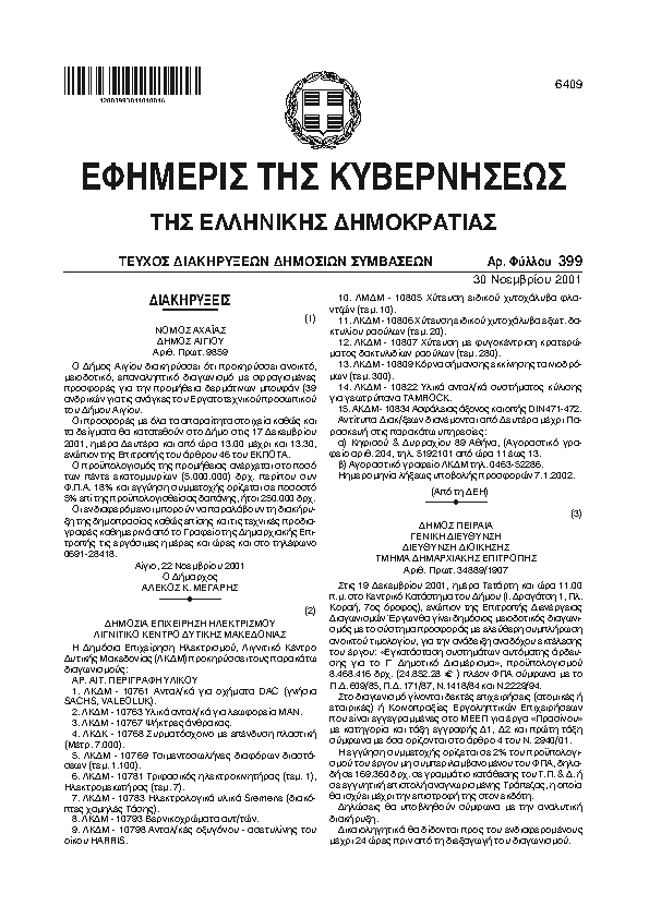 1. ΦΕΚ 3/A, 2001 http://www.et.gr/