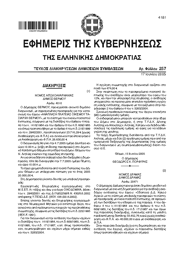Αναζήτηση στα ΦΕΚ για:  Κοινότητα Ιεράπετρας
