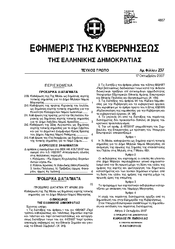 ΠΡΟΕΔΡΙΚΟ ΔΙΑΤΑΓΜΑ ΥΠ' ΑΡΙΘΜ. /2017 ΜΕΤΟΝΟΜΑΣΙΑ ΤΗΣ ΤΟΠΙΚΗΣ ΚΟΙΝΟΤΗΤΑΣ ΚΩΤΙΛΙΟΥ ΤΟΥ ΔΗΜΟΥ ΜΕΓΑΛΟΠΟΛΗΣ ΣΕ ΤΟΠΙΚΗ ΚΟΙΝΟΤΗΤΑ ΚΟΤΥΛΙΟΥ, ΚΑΘΩΣ ΚΑΙ ΤΟΥ ΟΜΩΝΥΜΟΥ ΟΙΚΙΣΜΟΥ ΚΩΤΙΛΙΟΥ ΣΕ ΟΙΚΙΣΜΟ ΚΟΤΥΛΙΟΥ