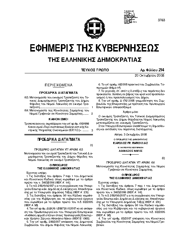 ΠΡΟΕΔΡΙΚΟ ΔΙΑΤΑΓΜΑ ΥΠ' ΑΡΙΘΜ. /2017 ΜΕΤΟΝΟΜΑΣΙΑ ΤΗΣ ΤΟΠΙΚΗΣ ΚΟΙΝΟΤΗΤΑΣ ΚΩΤΙΛΙΟΥ ΤΟΥ ΔΗΜΟΥ ΜΕΓΑΛΟΠΟΛΗΣ ΣΕ ΤΟΠΙΚΗ ΚΟΙΝΟΤΗΤΑ ΚΟΤΥΛΙΟΥ, ΚΑΘΩΣ ΚΑΙ ΤΟΥ ΟΜΩΝΥΜΟΥ ΟΙΚΙΣΜΟΥ ΚΩΤΙΛΙΟΥ ΣΕ ΟΙΚΙΣΜΟ ΚΟΤΥΛΙΟΥ