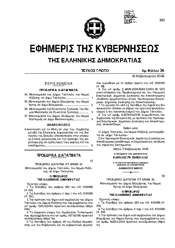 7. ΦΕΚ 36/A, 2006 http://www.et.gr/