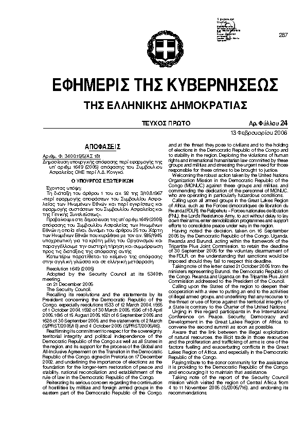 1. ΦΕΚ 2/A, 2006 http://www.et.gr/