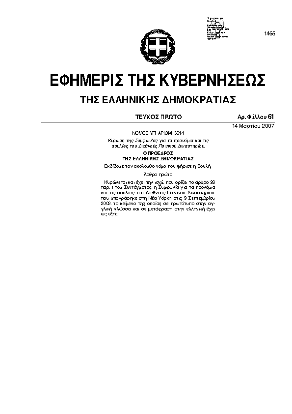 ΚΥΡΩΣΗ ΣΥΜΦΩΝΙΑΣ ΓΙΑ ΤΗΝ ΚΑΤΑΠΟΛΕΜΗΣΗ ΤΟΥ ΛΑΘΡΕΜΠΟΡΙΟΥ ΚΑΙ ΤΩΝ ΠΑΡΑΠΟΙΗΜΕΝΩΝ ΠΡΟΙΟΝΤΩΝ ΚΑΙ ΓΕΝΙΚΗ ΑΠΑΛΛΑΓΗ ΚΑΙ ΤΩΝ ΠΡΟΣΑΡΤΗΜΑΤΩΝ, ΤΩΝ ΣΥΝΗΜΜΕΝΩΝ ΕΓΓΡΑΦΩΝ ΚΑΙ ΤΩΝ ΠΙΝΑΚΩΝ ΑΥΤΗΣ