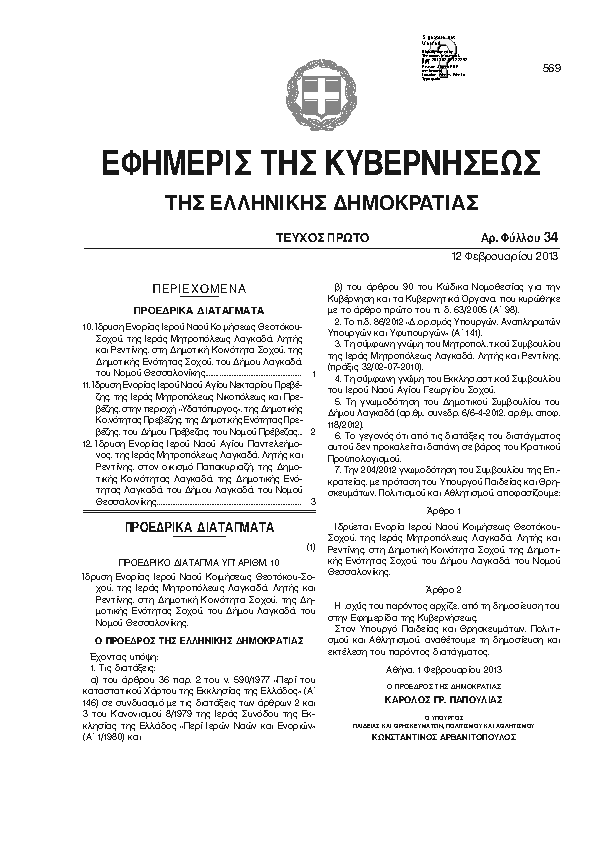ΙΔΡΥΣΗ ΕΝΟΡΙΑΣ ΙΕΡΟΥ ΝΑΟΥ ΚΟΙΜΗΣΕΩΣ ΘΕΟΤΟΚΟΥ-ΣΟΧΟΥ, ΤΗΣ ΙΕΡΑΣ ΜΗΤΡΟΠΟΛΕΩΣ ΛΑΓΚΑΔΑ, ΛΗΤΗΣ ΚΑΙ ΡΕΝΤΙΝΗΣ, ΣΤΗ ΔΗΜΟΤΙΚΗ ΚΟΙΝΟΤΗΤΑ ΣΟΧΟΥ, ΤΗΣ ΔΗΜΟΤΙΚΗΣ ΕΝΟΤΗΤΑΣ ΣΟΧΟΥ, ΤΟΥ ΔΗΜΟΥ ΛΑΓΚΑΔΑ, ΤΟΥ ΝΟΜΟΥ ΘΕΣΣΑΛΟΝΙΚΗΣ