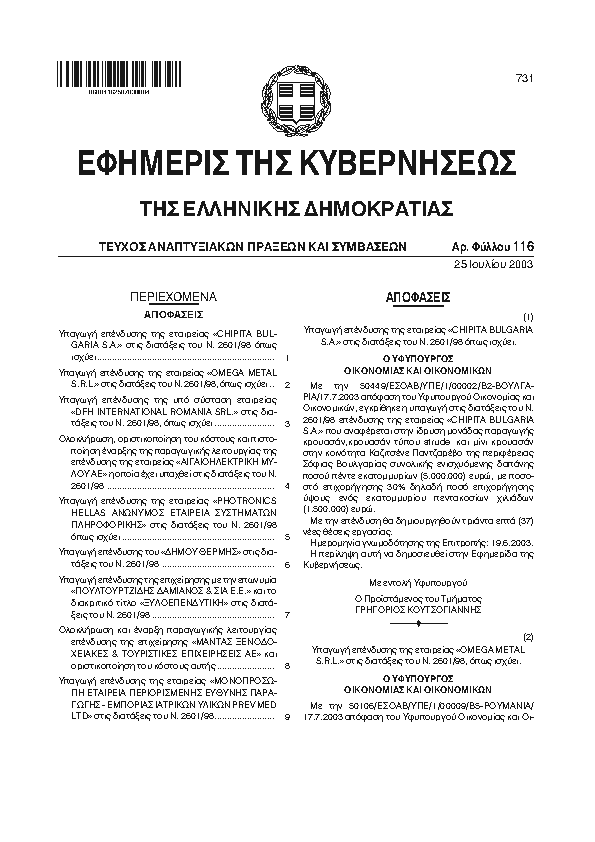 Αναζήτηση στα ΦΕΚ για:  Κοινότητα