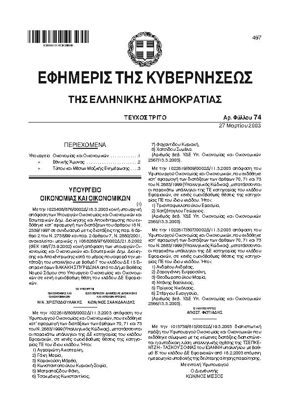 Αναζήτηση στα ΦΕΚ για:  Κοινότητα