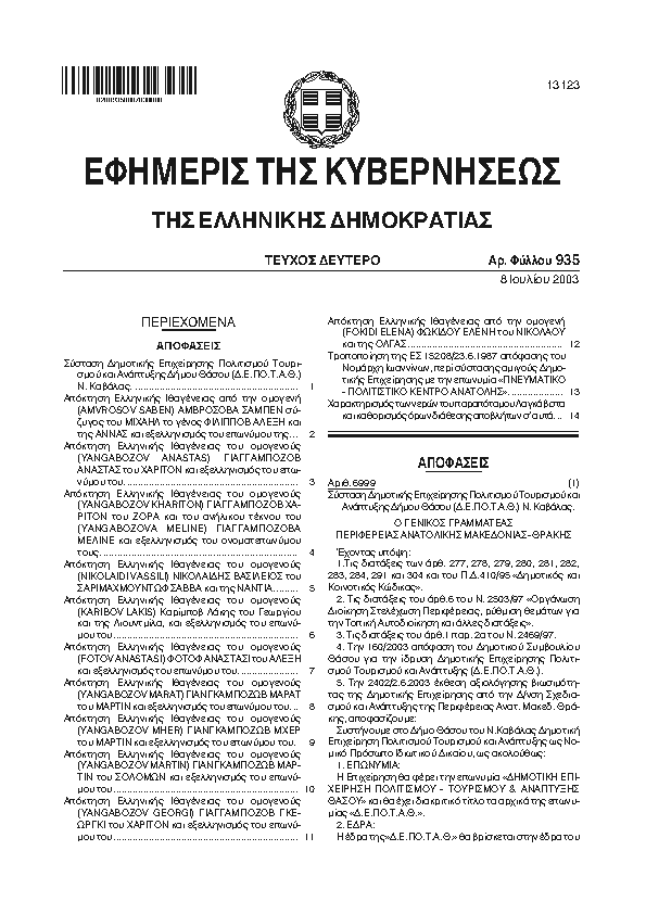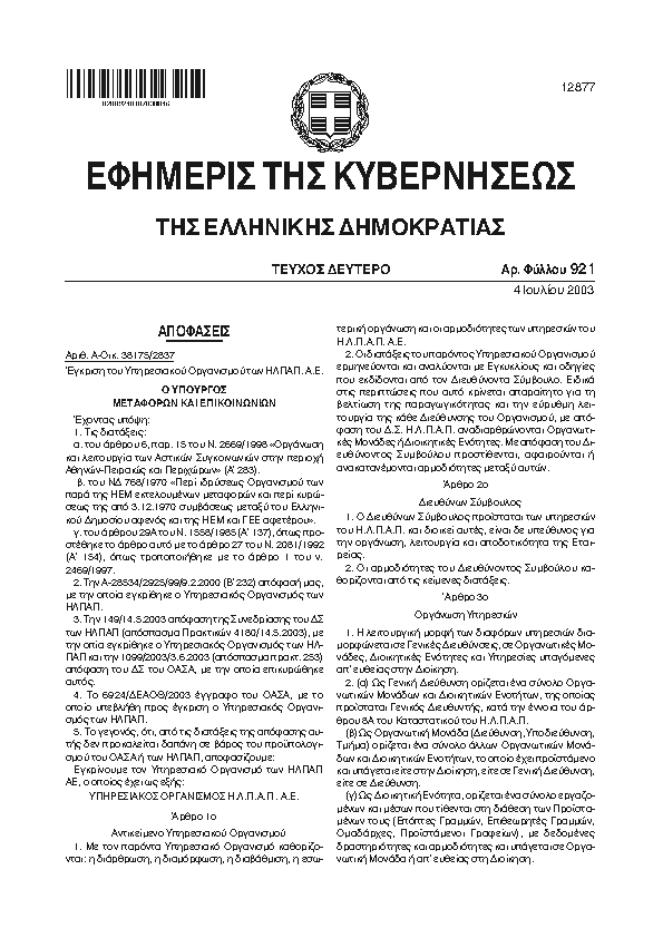 Αναζήτηση στα ΦΕΚ για:  Κυκλοφοριακών Ρυθμίσεων