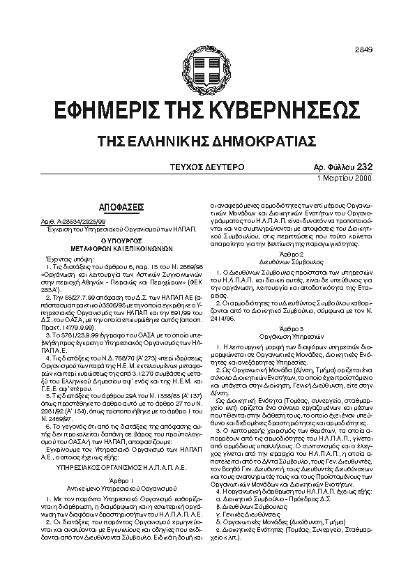 Αναζήτηση στα ΦΕΚ για:  Κυκλοφοριακών Ρυθμίσεων