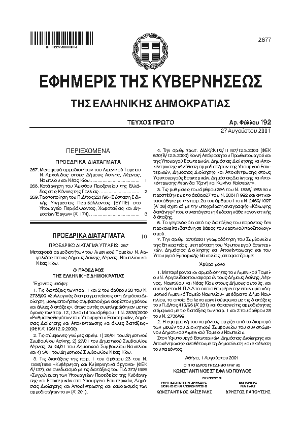 ΚΥΡΩΣΗ ΤΟΥ ΠΡΩΤΟΚΟΛΛΟΥ ΓΙΑ ΤΗΝ ΠΑΡΑΤΑΣΗ ΤΗΣ ΙΣΧΥΟΣ ΤΟΥ ΠΡΩΤΟΚΟΛΛΟΥ ΣΥΝΕΡΓΑΣΙΑΣ ΜΕΤΑΞΥ ΤΟΥ ΥΠΟΥΡΓΕΙΟΥ ΕΜΠΟΡΙΚΗΣ ΝΑΥΤΙΛΙΑΣ ΤΗΣ ΕΛΛΗΝΙΚΗΣ ΔΗΜΟΚΡΑΤΙΑΣ ΚΑΙ ΤΟΥ ΥΠΟΥΡΓΕΙΟΥ ΔΗΜΟΣΙΑΣ ΤΑΞΗΣ ΤΗΣ ΔΗΜΟΚΡΑΤΙΑΣ ΤΗΣ ΑΛΒΑΝΙΑΣ ΣΧΕΤΙΚΑ ΜΕ ΤΗΝ ΕΚΤΕΛΕΣΗ ΚΟΙΝΩΝ ΠΕΡΙΠΟΛΙΩΝ ΑΠΟ ΤΗΝ ΑΣΤΥΝΟΜΙΑ ΣΥΝΟΡΩΝ ΚΑΙ ΤΟ ΕΛΛΗΝΙΚΟ ΛΙΜΕΝΙΚΟ ΣΩΜΑ ΓΙΑ ΤΗΝ ΑΠΟΤΕΛΕΣΜΑΤΙΚΟΤΕΡΗ ΑΣΤΥΝΟΜΕΥΣΗ ΤΗΣ ΘΑΛΑΣΣΙΑΣ ΜΕΘΟΡΙΟΥ ΜΕΤΑΞΥ ΤΩΝ ΔΥΟ ΧΩΡΩΝ