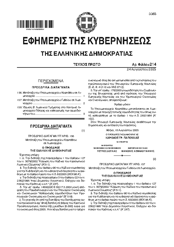 6. ΦΕΚ 214/A, 2005 http://www.et.gr/