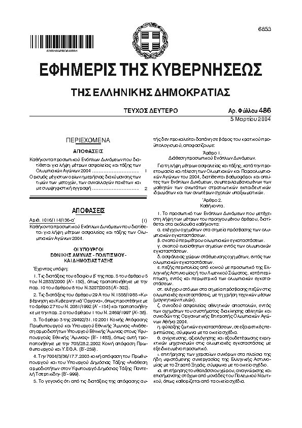 Αναζήτηση στα ΦΕΚ για:  Λιμενικό