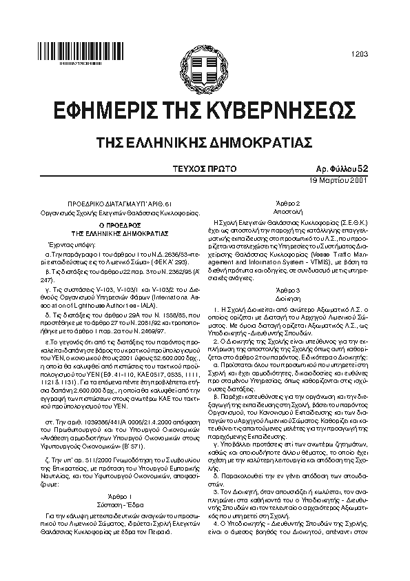 2. ΦΕΚ 52/A, 2001 http://www.et.gr/