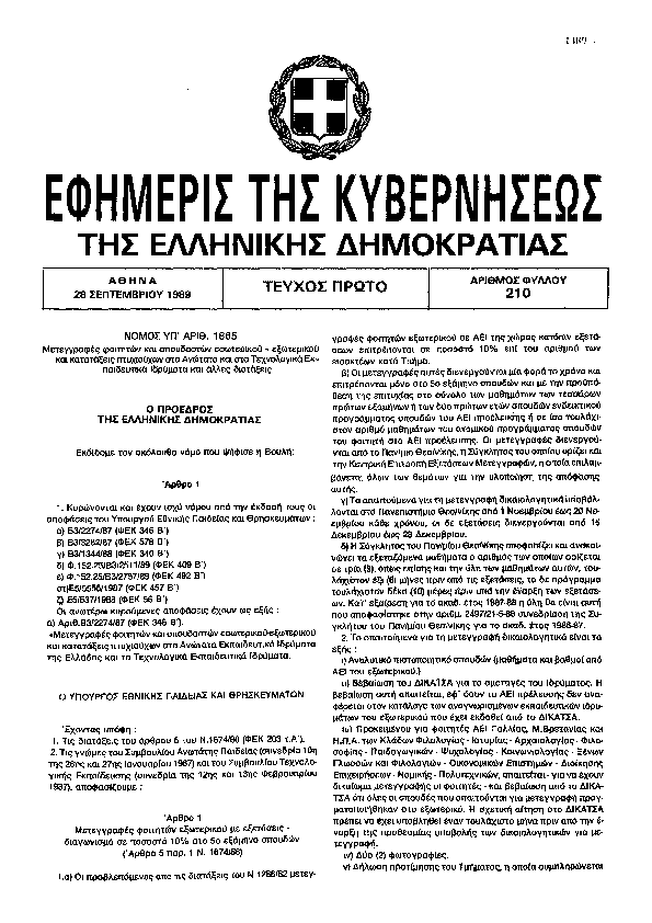ΜΕΤΕΓΓΡΑΦΕΣ ΦΟΙΤΗΤΩΝ ΚΑΙ ΣΠΟΥΔΑΣΤΩΝ ΕΣΩΤΕΡΙΚΟΥ - ΕΞΩΤΕΡΙΚΟΥ ΚΑΙ ΚΑΤΑΤΑΞΕΙΣΠΤΥΧΙΟΥΧΩΝ ΣΤΑ ΑΝΩΤΑΤΑ ΚΑΙ ΣΤΑ ΤΕΧΝΟΛΟΓΙΚΑ ΕΚΠΑΙΔΕΥΤΙΚΑ ΙΔΡΥΜΑΤΑ ΚΑΙ ΑΛΛΕΣ ΔΙΑΤΑΞΕΙΣ
