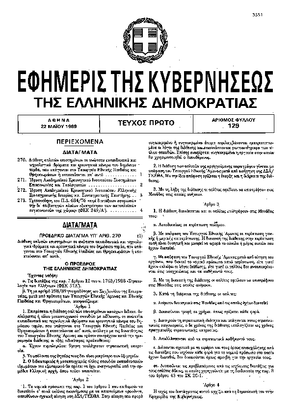 ΔΙΑΘΕΣΗ ΟΠΛΙΤΩΝ ΕΠΙΣΤΗΜΟΝΩΝ ΣΕ ΑΝΩΤΑΤΑ ΕΚΠΑΙΔΕΥΤΙΚΑ ΚΑΙ ΤΕΧΝΟΛΟΓΙΚΑ ΙΔΡΥΜΑΤΑ ΚΑΙ ΕΡΕΥΝΗΤΙΚΑ ΚΕΝΤΡΑ ΤΟΥ ΔΗΜΟΣΙΟΥ ΤΟΜΕΑ, ΠΟΥ ΥΠΑΓΟΝΤΑΙ ΣΤΟ ΥΠΟΥΡΓΕΙΟ ΕΘΝΙΚΗΣ ΠΑΙΔΕΙΑΣ ΚΑΙ ΘΡΗΣΚΕΥΜΑΤΩΝ Η ΕΠΟΠΤΕΥΟΝΤΑΙ ΑΠ ΑΥΤΟ.