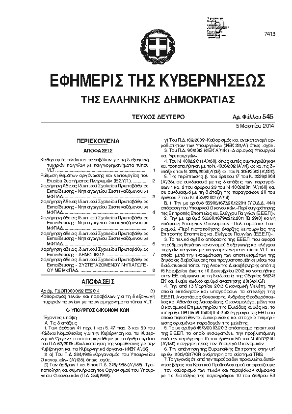 Αναζήτηση στα ΦΕΚ για:  ΝΙΚΗΣ
