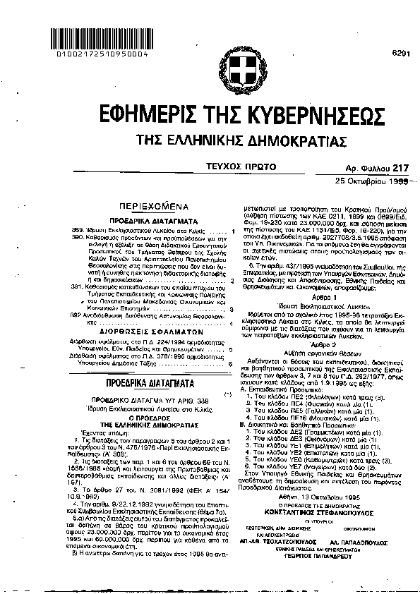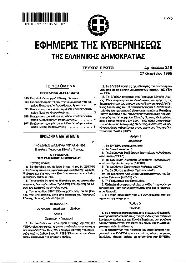 3. ΦΕΚ 217/A, 1995 http://www.et.gr/ Προεδρικό Διάταγμα