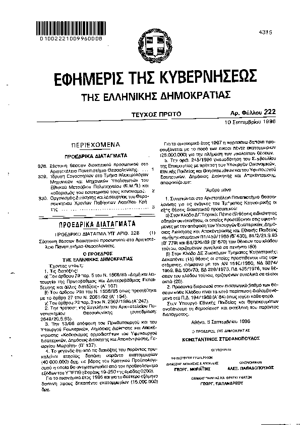 10. ΦΕΚ 222/A, 1996 http://www.et.gr/