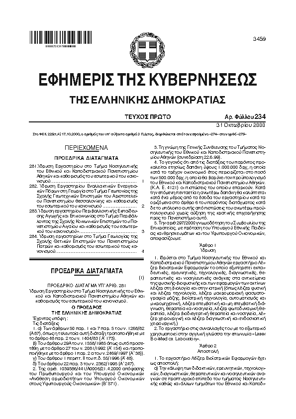1. ΦΕΚ 43/A, 2000 http://www.et.gr/