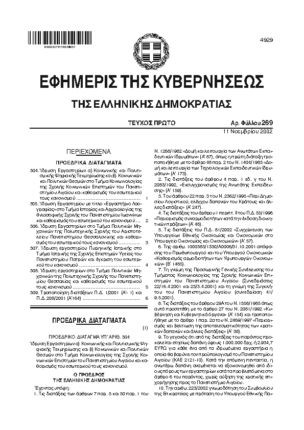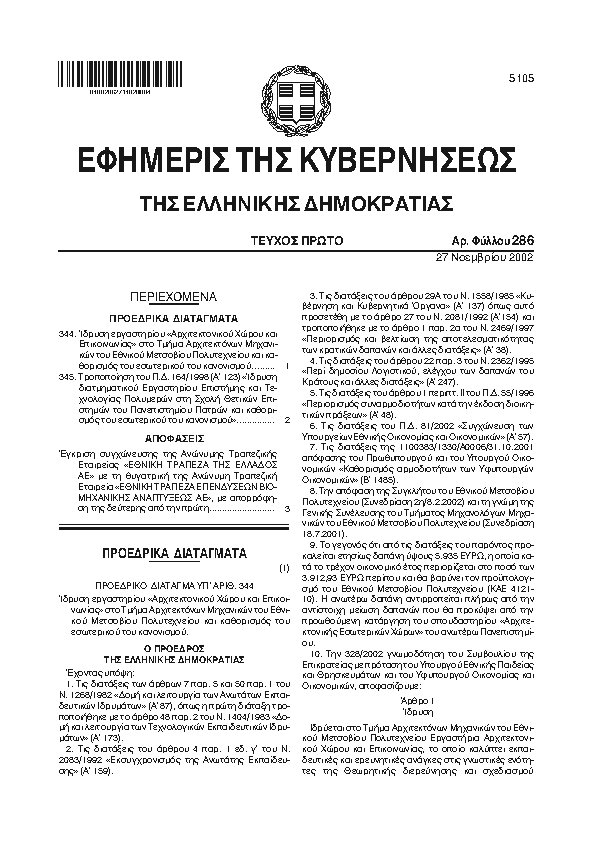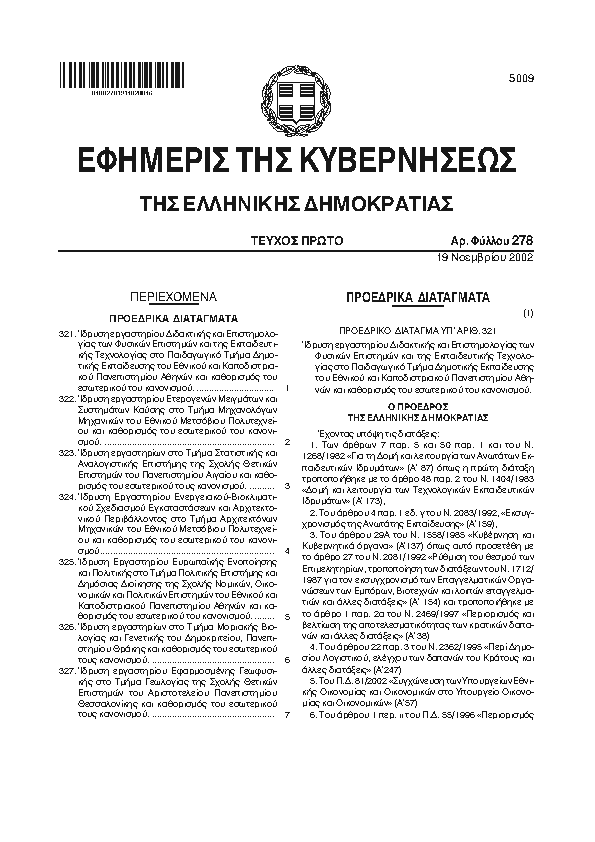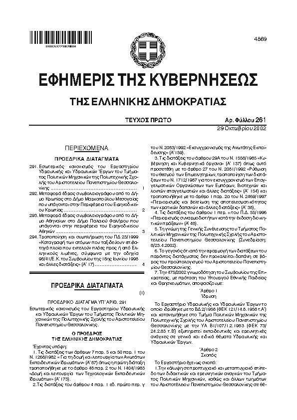 4. ΦΕΚ 275/A, 2002 http://www.et.gr/ Προεδρικό Διάταγμα