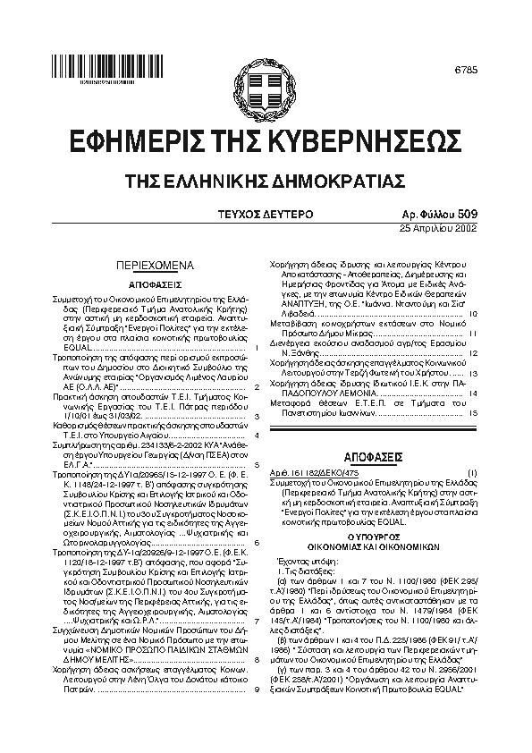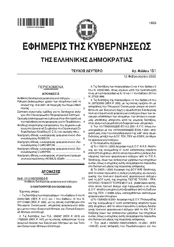 Αναζήτηση στα ΦΕΚ για:  ΝΙΚΗΣ