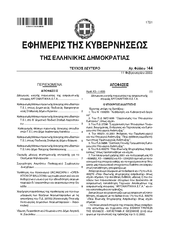 Αναζήτηση στα ΦΕΚ για:  ΝΙΚΗΣ