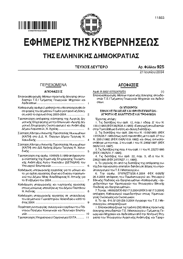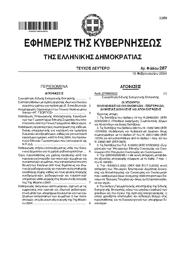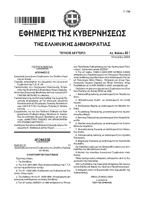 Αναζήτηση στα ΦΕΚ για:  ΝΙΚΗΣ