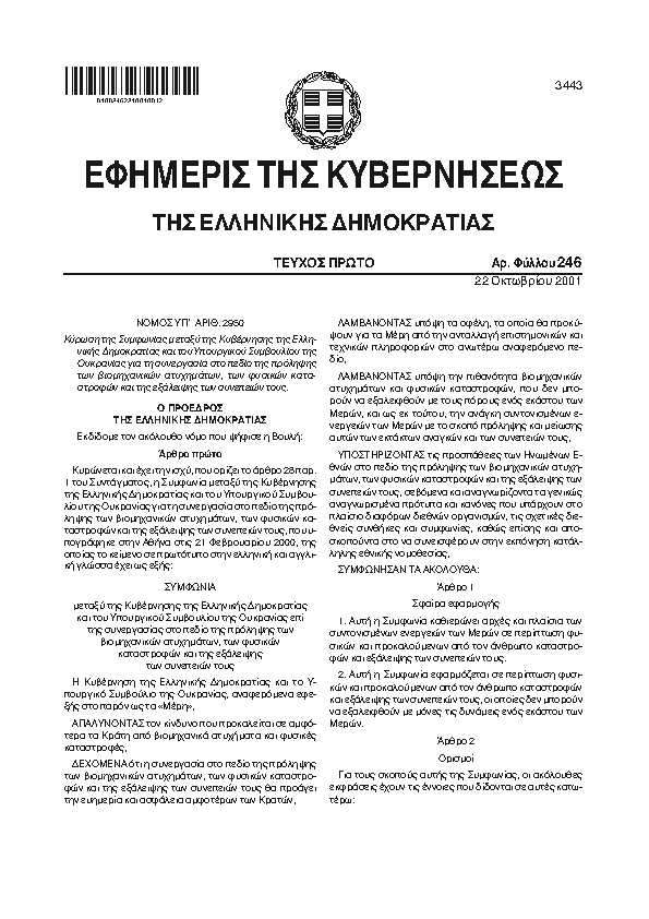 • ΚΥΡΩΣΗ ΤΗΣ ΣΥΜΦΩΝΙΑΣ ΜΕΤΑΞΥ ΤΗΣ ΚΥΒΕΡΝΗΣΗΣ ΤΗΣ ΕΛΛΗΝΙΚΗΣ ΔΗΜΟΚΡΑΤΙΑΣ ΚΑΙ ΤΟΥ ΥΠΟΥΡΓΙΚΟΥ ΣΥΜΒΟΥΛΙΟΥ ΤΗΣ ΟΥΚΡΑΝΙΑΣ ΓΙΑ ΤΗΝ ΑΜΟΙΒΑΙΑ ΣΥΝΕΡΓΑΣΙΑ ΣΕ ΤΕΛΩΝΕΙΑΚΑ ΘΕΜΑΤΑ