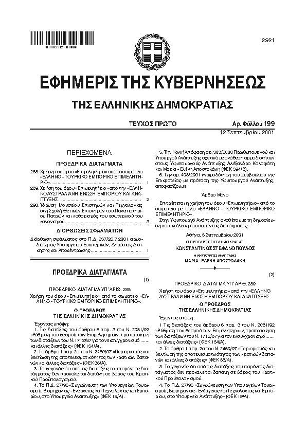10. ΦΕΚ 296/A, 2001 http://www.et.gr/