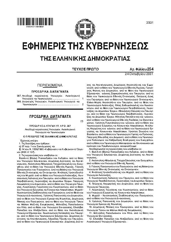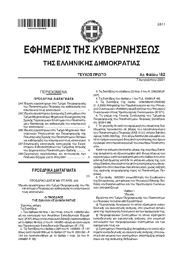 7. ΦΕΚ 245/A, 2001 http://www.et.gr/